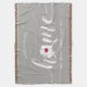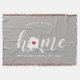 Show some home state pride with this cute rustic gray throw blanket featuring "home" in white calligraphy script lettering with a silhouette map of the state of Alaska standing in for the letter "O." A pink heart illustration inside the state map completes the design; you can change the position of the heart to your home city by opening the design tool and dragging the heart shape to your favorite spot. Personalize with your home city, family name and year established to create a perfect and memorable housewarming gift or addition to your new home.