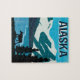 Wonderful poster style artwork features Alaska mountains with glaciers, water, trees and a moose. Fun activity for the whole family.