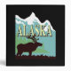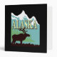 Silhouette of a moose, a blue and white mountain and the word "Alaska" against black background. Customizable text on spine