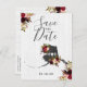 Alaska State Destination Rustic Country Chic with White Barn Wood & Marsala Burgundy Watercolor Floral Arrangements & Boho Feathers Wedding Save the Date Post cards With trendy Hand Lettered Script font! ~ Check my shop to see the entire wedding collection with this design!