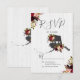 Alaska State Destination Rustic Country Chic with White Barn Wood & Marsala Burgundy Watercolor Floral Arrangements & Boho Feathers Wedding RSVP cards With trendy Hand Lettered Script font! ~ Check my shop to see the entire wedding collection with this design!