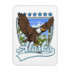 Alaska Travel Patch in a vintage style with a Golden eagle in a wintery landscape.