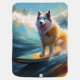 Alaskan Malamute Beach Surfing Painting Baby Blanket