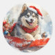 Alaskan Malamute in Sledge Let it Snow Christmas Classic Round Sticker