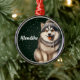 Fun holiday ornament features an Alaskan Malamute dog with grey striped winter hat and scarf. Add a personalized touch with dog's name or other special message. Great gift idea for dog lovers!
