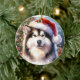 Alaskan Malamute Santa Hat Watercolor Christmas Ceramic Ornament