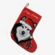 Perfect! Exactly what I ordered! I uploaded a picture of my blue chow, and the screen print was incredible. the back side of the stocking was the red and black checkered print. my puppy's name was also printed on the cuff of the stocking. PERFECT! Highly recommend this product! My puppy's name was screen printed onto the cuff of the stocking, the font was perfect!