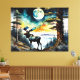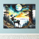 Alaskan Moose Under the Moonlight on a Forest Ridge overlooking the Ocean