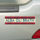 A bumper sticker for supporters of independence for Scotland from the UK Westminster government. The Albu Gu Brath slogan - Scots Gaelic for Scotland Forever - is in dark navy lettering on a cream background. Top and botton of the design is a border of the famous Royal Stewart, or Stuart, tartan pattern.You can change the colour of the slogan wording and colour background to suit by using the customize button.