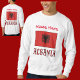 Men's long sleeve sweatshirt features the Albanian Flag with the word ALBANIA written below, in the red and black colors of the flag. Add a name in the space provided, in red letters, for a personal look. Or, create a customized gift by adding someone else's name. Great gift. Fun to wear to family reunions, travel groups, and clubs.