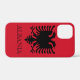 The Emblem of the Republic of Albania (Albanian: Stema e Republikës së Shqipërisë) is an adaptation of the flag of Albania. It is based on the flag and seal of Gjergj Kastrioti Skanderbeg. The crest above the head of the two-headed eagle is the helmet of Skanderbeg, surmounted with billy goat's horns. The eagle is considered to violate the conventional rule of tincture, which forbids placing a colour (i.e. a dark tincture) upon another colour.