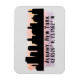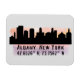 Flexible magnet with Albany NY city skyline silhouette, map coordinates and watercolor splash background.