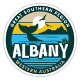 A bold, vintage-inspired sunset design celebrating Albany, in the Great Southern Region of Western Australia. This round artwork features a striking silhouette of a whale tail rising from the ocean, with serene islands in the distance and birds gracefully soaring overhead—a perfect tribute to Albany’s natural beauty and marine life.