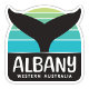 A bold, eye catching design celebrating Albany, in the Great Southern Region of Western Australia. This artwork features a striking silhouette of a whale tail against vivid turquoise ocean background.