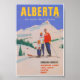 Alberta Canada Vintage Ski Poster featuring a family of skiers in this colorful retro travel poster.