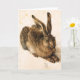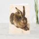 Albrecht Durer Young Hare greeting card. Gouache and Watercolor on Paper. Northern Renaissance Artist Albrecht Durer was renowned for his etchings, yet he was also an accomplished water color painter. Young Hare (Feldhase) is one of the most famous animal paintings of all time. The work features a beautiful rabbit with long hair and whiskers sitting proudly on a a soft gouache background. A beautiful gift for fans of Albrecht Durer, Northern Renaissance Art, and rabbit paintings.