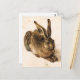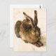 Albrecht Durer Young Hare postcard. Gouache and Watercolor on Paper. Northern Renaissance Artist Albrecht Durer was renowned for his etchings, yet he was also an accomplished water color painter. Young Hare (Feldhase) is one of the most famous animal paintings of all time. The work features a beautiful rabbit with long hair and whiskers sitting proudly on a a soft gouache background. A beautiful gift for fans of Albrecht Durer, Northern Renaissance Art, and rabbit paintings.