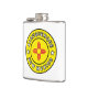 Well made flask, a little better than I had expected. Flask came in clear plastic box which gave it a nice presentation when I took it out of the zazzle packaging. Image is not printed on flask but on sticker. Don't know how this will hold up I haven't used it yet. This would make a Great gift! I plan to purchase more for friends! Cheers. I thought a little brighter than computer. Very crisp, writing wasn't