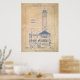 Alcatraz Island Lighthouse Blueprint Vintage Poster
