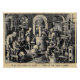 Master alchemist sits in a chair studying mystical alchemy manuscripts with his assistant as his apprentices operate the various lab tools in the process of distillation. Mortar and pestle to mix ingredients, bellows to warm the fire. Furnaces are tended by the older adepts to heat retorts and collect distillate in receivers. © dotpattern