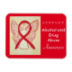 Alcohol and Drug Abuse uses a red ribbon to support awareness for its cause. The custom magnet features a red awareness ribbon guardian angel art magnet with the message "Support Alcohol and Drug Abuse Awareness". The red awareness angel ribbon art can be customized with personalized messages to make great cause merchandise magnets for fundraisers, awareness gifts, or other special cause events or occasions.
