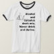 The product was as advertised. The message is succinct and is an eye-catcher. This shirt gets a heap of feedback from onlookers. Most ask you to stand still while they finish reading the definition. They then either give you the thumbs-up or nod any walk away. Either way, its a real conversation starter and so far, no one has disagreed enough with the print to verbalize. The material is fairly light, but the print is stable enough to withstand washes and some activity. A fair deal. Readable and durable.