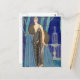 Art Deco Pochoir by George Barbier featuring a lovely coat and evening gown by Worth. Silver ink highlights on the gown and coat lining. The elegant ensemble imitates the fountain in its flow from one level to the next.