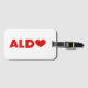 The name Aldo with the letter o replaced with a red love heart. A perfect gift for a friend or family member with a big heart or perhaps you are a fan of someone with the name. A sports personality or artist. Wear it at an event to show that you love them. The colours can be changed.
