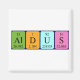 Aldus spelled out as Al D U S (Aluminum Deuterium Uranium Sulfur) on a magnet for the scientist in you.
