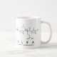 Alea spelled out in amino acids as A L E A (Alanine Leucine Glutamic acid Alanine) on a mug for the scientist in you.