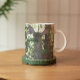 Large size, ceramic coffee mug for your hot or cold beverages that features the photo image of an alert forest Mule Deer. Image is printed on both sides of mug. Select your mug style and color.