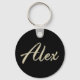 Ein sehr schöner edler personalisierter Button Schlüsselanhänger im whitegold Lettering Look auf schwarz für Alex.