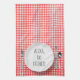 Alexa electronic device command for washing dishes on white dinner plate on red and white gingham pattern.