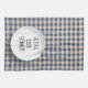 Alexa electronic device command for cooking dinner on white dinner plate and blue checked pattern.