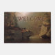 Can PERSONALIZE this bear doormat! Artist: Alexander Helwig Wyant - Three Bears, oil painting, c. 1870-1872. Three black bears on a rock outcropping watch over a peaceful river in the mountain wilderness.