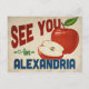 A charming Alexandria Virginia vintage travel design featuring a lovely red apple, along with fun retro style text that says, "See you in Alexandria"
