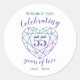 Sapphire celebrating 55 years of love anniversary stickers. Simple outline heart stone effect line art graphics green, blue, purple pink and white 55th Sapphire Wedding Anniversary round stickers. Customize with your own fifty fifth wedding anniversary party details. 55th Anniversary is associated with the gemstone alexandrite and the heart symbolizes love. Graphics and design by Sarah Trett for www.mylittleedenweddings.com on zazzle.