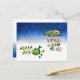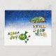 These cute cartoon algae and krill are what whales eat. They are very tiny and whales open their mouths wide and scoop up millions. Text reads "Algae Joy. On the back is Barnacle Bliss. This Christmas postcard accompanies a card with Santa delivering presents by whale. The whale's smile is saying Happy Holidays. This makes an aquatic nature oriented holiday card with postage for Christmas Hanukkah, or Kwanzaa.