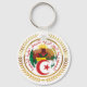 The national coat of arms of Algeria is infused into a circle shape rimmed with faux gold, and set amidst a faux gold laurel wreath.