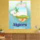 Algiers Algerian Map travel poster featuring a map of the African Nation and a beautiful old prop plane.