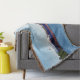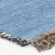 A quality printed throw has its advantages. This is a much finer weave throw than its loopier cousins, and though lighter, it is worth the investment for custom room accessorizing. The back is much prettier than the typical brown, and the fringe on the long sides very vivid, the selvage nicely done. Before photographing, I washed the throw in cold water, delicate, with a thicker woven throw the same size. On tumble dry low, this throw was dry in half the time as the other. This is a very practical quality if you use throws for furniture covers or to wrap up in frequently. The sleekness of the fabric makes it a great layer for accenting or protecting without the feeling of sitting on too much stuff. Perfect for napping or when you feel a light chill coming on. The color printing is beautiful and on this fabric, matched the design and color of my Photoshop image. This is an advantage for blending room fabrics and colors. The fringe on the short sides prints the colors from the design image and therefore varies from the side fringe. I streaked a white fractal line through the plaid pattern to give the illusion of weaving. This printed as crisp as an illusory thread, and put some white in the short side fringe, showing another advantage of print vs loomed- for artistic purposes, line lines, detail, and color integrity can be planned and preserved. My loomed throws have color limitations and more of a needlepoint texture. Print throws reproduce an exact image. The throw felt a little stiff straight out of the package, but this went away in the first delicate wash. Of course I searched the wash water for ink or bleeding and there was none.