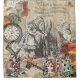 Fall down the rabbit hole with this enchanting design inspired by Lewis Carroll's timeless classic, "Alice's Adventures in Wonderland." This whimsical collage features antique illustrations of Alice peeking behind a curtain, the White Rabbit, the Mad Hatter's iconic hat, and playing card figures painting roses. Sprinkled throughout are vintage-style flowers, a classic pocket watch, and a bumblebee, all overlaid on a subtly patterned background with the memorable quote, "If I had a world of my own, everything would be nonsense" attributed to Alice. This design evokes the magical and nonsensical spirit of Wonderland, perfect for those who love literary art, Victorian aesthetics, and a touch of nostalgic fantasy.