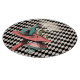 A black and white checkered background with a vintage alice and the hookah smoking caterpillar image