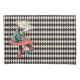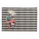 A black and white checkered background with a vintage alice and the hookah smoking caterpillar image