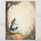 Get ready for a whimsical adventure with this delightful paper featuring Alice and a magical key. It showcases Alice standing under a fantastical tree, from which a golden key hangs, amidst a border of charming flowers and lush green grass. With unlimited creative possibilities, this paper is perfect for invitations, scrapbooking, junk journaling, and other personalized projects. Printed in high-quality, full-color on thin matte paper, it's designed to bring a crisp, professional look to your personal or business mailings. Add personal photos and text for no additional upcharge, making it a versatile and memorable addition to any project.