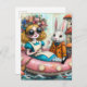 Adorable Alice and the white rabbit enjoying life floating down a river encaustic collage art AI generated art