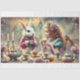 Experience a magical tea party where wonder knows no bounds. Dreamy watercolor effects create an ethereal atmosphere as girl and rabbit share impossible treats. Every detail invites viewers deeper into this fantastical realm. Perfect for creative souls who love storybook magic.
