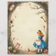Step into a whimsical world with this delightful paper featuring Alice and the White Rabbit. It showcases a charming floral border of red roses and green leaves framing a central space, with Alice and the White Rabbit standing at the bottom. With unlimited creative possibilities, this paper is perfect for scrapbooking, junk journaling, crafting, and other personalized projects. Printed in high-quality, full-color on thin matte paper, it's designed to bring a crisp, professional look to your personal or business mailings. Add personal photos and text for no additional upcharge, making it a versatile and memorable addition to any project.