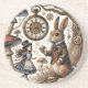 Step into a whimsical wonderland with this enchanting Alice's Adventures in Wonderland illustration. The Victorian-styled White Rabbit holds his teacup with proper poise, while Alice in her iconic blue dress dreams of adventure. Mystical mushrooms dot the scene, and a fascinating clockwork tree bears a mysterious pocket watch - time is always of the essence in Wonderland! Perfect for nurseries, children's rooms, or any space needing a touch of magical charm. This delightful artwork captures the beloved story's essence with its detailed steampunk-inspired elements and dreamy atmosphere.