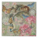 This is the classic Alice in Wonderland and the Cheshire Cat, as Alice chats with the Cheshire Cat who is sitting in its tree. This Alice in Wonderland image is based on the original Cheshire Cat image from the original Alice's Adventures in Wonderland series by illustrator John Tenniel, put together in a collage with flowers, a key, pocket watches, and butterflies for a beautiful art piece celebrating everything Alice.